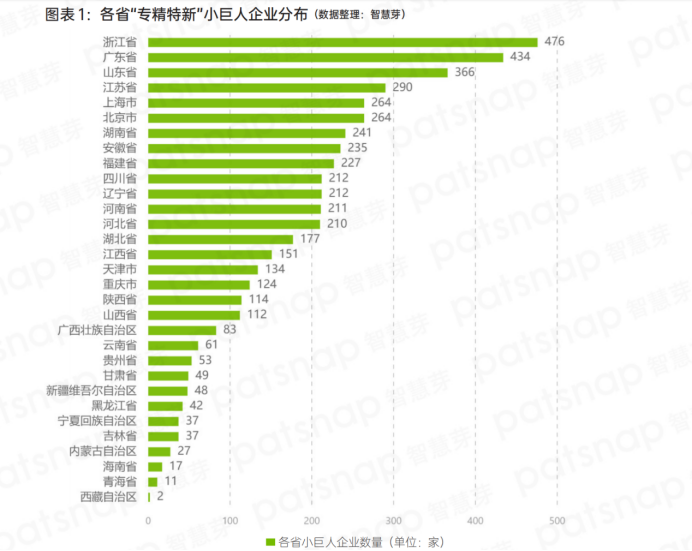 我國已經培育的三批 “專精特新”小巨人企業,分布在31個省市自治區。其中“專精特新”小巨人企業數量排名前三的省份分別是浙江省、廣東省和山東省,而小巨人企業超過200家的省份有 13 個,還包括了江蘇省、北京市、上海市、湖南省、安徽省、福建省、遼寧省、四川省、河南省和河北省。