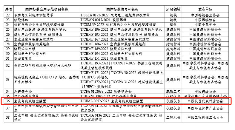 今日,工業(yè)和信息化部公布“2023年團體標準應用示范項目的通告”,中國儀器儀表行業(yè)協(xié)會團體標準《直流電能表檢驗裝置》(T/CIMA0052-2022)獲評工業(yè)和信息化部2023年團體標準應用示范項目。