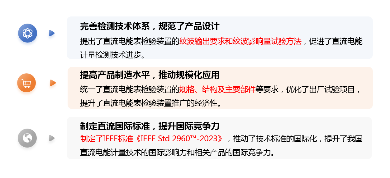 本團體標準廣泛應用于計量院、電網(wǎng)公司、計量檢測機構(gòu)以及相關(guān)制造企業(yè),提升了直流電能計量器具及其檢驗裝置的設(shè)計、制造和規(guī)模化應用。