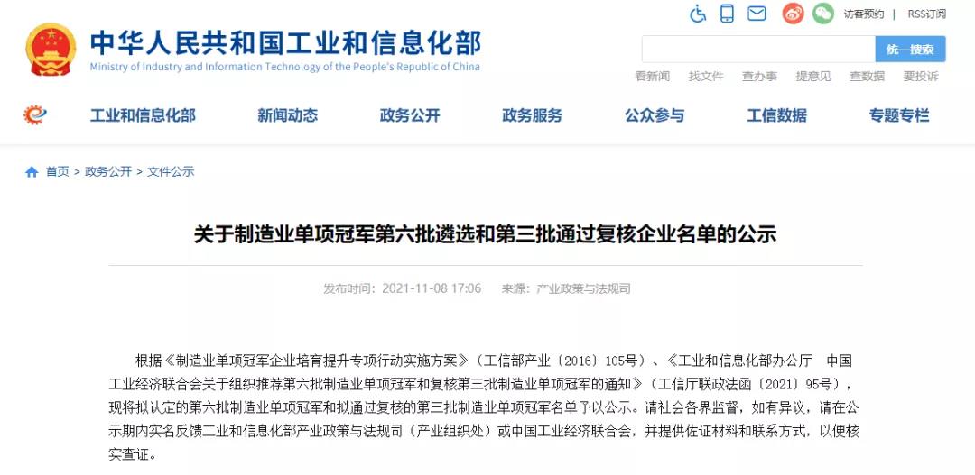 康斯特再次榮獲“制造業(yè)單項(xiàng)冠軍”稱號(hào)