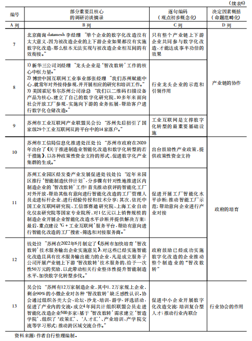表6 “制造業(yè)數(shù)字化改造決定因素”命題的概念化過程