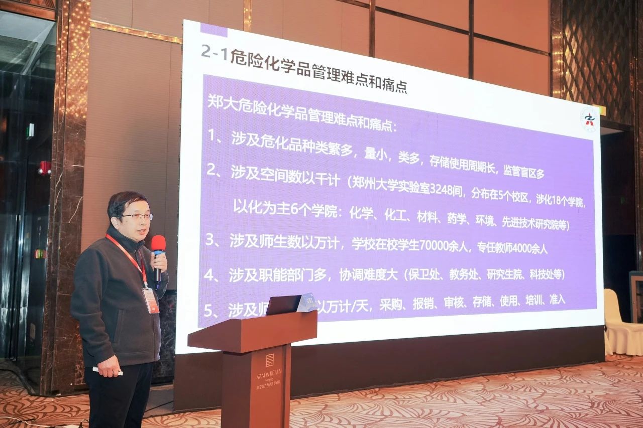315日下午,“實驗室安全管理”分論壇由華中科技大學實驗室與設備管理處原處長李震彪,北京師范大學實驗室安全與設備管理處處長李崧主持。鄭州大學實驗室管理中心原主任、正處級巡視員馬國杰,誠創智能科技(江蘇)有限公司商務經理邱璟,江蘇埃德伯格電氣有限公司董事長楊勇,西安交通大學實驗室管理處處長朱臻,南京大學化學化工學院副院長李育佳,南京諾飛爾信息科技有限公司技術總監呂歡,華東師范大學化學與分子工程學院副院長張中海帶來精彩報告!