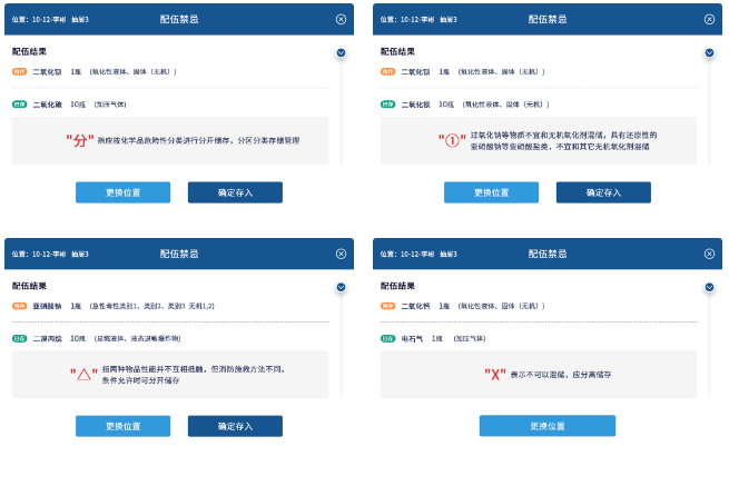 系統根據?;防砘再|,提示配伍禁忌,避免不相容的?;坊旆呕齑妫瑯O大降低安全風險。