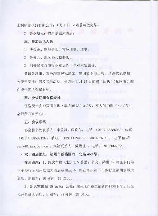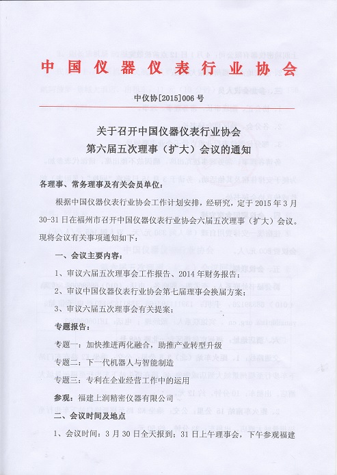 關于召開中國儀器儀表行業(yè)協(xié)會第六屆五次理事(擴大)