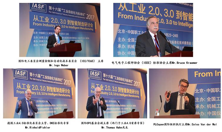 本次會(huì)議特別邀請了來自國際電工委員會(huì)測量控制和自動(dòng)化技術(shù)委員會(huì)(IEC/TC65)、電氣電子工程師協(xié)會(huì)(IEEE)標(biāo)準(zhǔn)協(xié)會(huì)、德國工業(yè)4.0標(biāo)準(zhǔn)化委員會(huì)、PLCopen國際組織、德國電氣電子和信息技術(shù)委員會(huì)(DKE)、OPC基金會(huì)等智能制造相關(guān)的國際權(quán)威標(biāo)準(zhǔn)化和研究機(jī)構(gòu)的知名專家做專題報(bào)告,與參會(huì)者共同分享和探討了智能制造相關(guān)領(lǐng)域的國際技術(shù)動(dòng)態(tài)和實(shí)踐經(jīng)驗(yàn)。