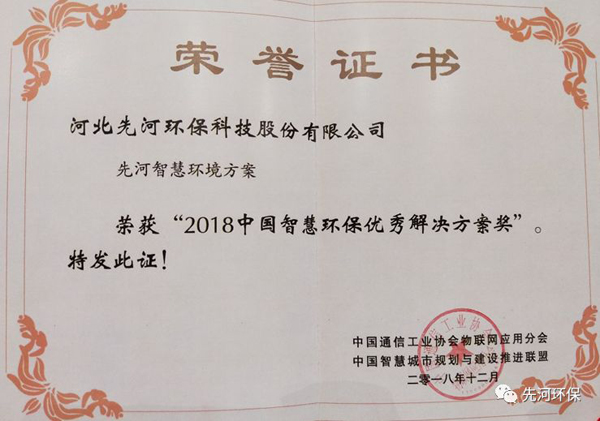 先河環保榮獲“2018中國智慧環保優秀解決方案獎”