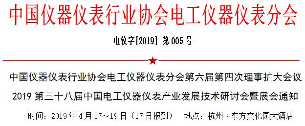 中國儀器儀表行業(yè)協(xié)會(huì)電工儀器儀表分會(huì)定于 2019 年4月17~19日在杭州東方文化園大酒店召開“2019 第三十八屆中國電工儀器儀表產(chǎn)業(yè)發(fā)展技術(shù)研討會(huì)暨展會(huì)”,同期召開“中國儀器儀表行業(yè)協(xié)會(huì)電工儀器儀表分會(huì)第六屆第四次理事擴(kuò)大會(huì)議”、“中國儀器儀表行業(yè)協(xié)會(huì)團(tuán)體標(biāo)準(zhǔn)系列會(huì)議”。