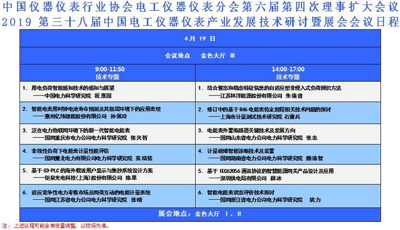 2、中國儀器儀表行業(yè)協(xié)會(huì)電工儀器儀表分會(huì)第六屆第四次理事(擴(kuò)大)會(huì)議(18日下午):