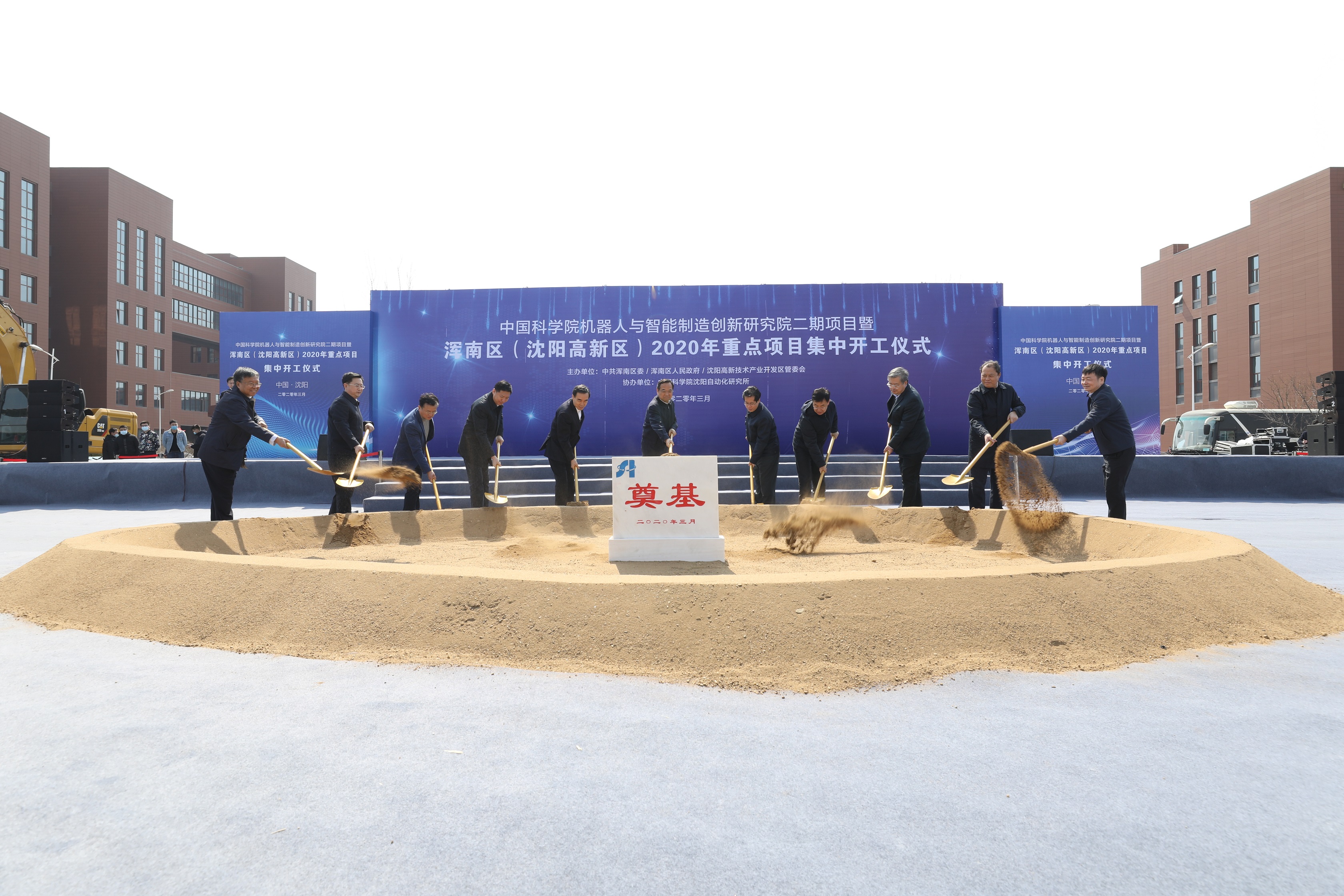 3月30日,渾南區(qū)、沈陽高新區(qū)2020年重點(diǎn)項(xiàng)目集中開工儀式在中國科學(xué)院沈陽自動(dòng)化研究所創(chuàng)新路所區(qū)新開項(xiàng)目現(xiàn)場舉行。遼寧省委常委、沈陽市委書記張雷,市委副書記、市長姜有為,市委常委、副市長李松林,市委常委、市委秘書長李強(qiáng),市政府副市長王忠昆,市政府秘書長曹鵬,渾南區(qū)委書記、沈陽高新區(qū)黨工委書記單義,渾南區(qū)政府區(qū)長、沈陽高新區(qū)管委會主任閆占峰出席活動(dòng)。沈陽自動(dòng)化所所長于海斌、黨委書記兼副所長桑子剛出席并與主席臺領(lǐng)導(dǎo)共同為項(xiàng)目奠基。