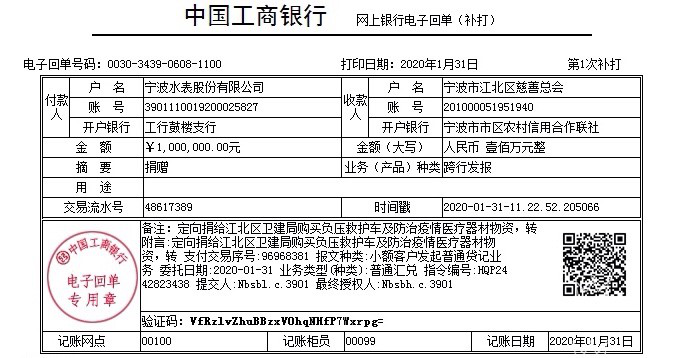 公司通過江北區慈善總會向江北區衛生健康局定向捐款100萬元(用于購置負壓救護車),并于第一時間采購價值近60萬元的KN95防護口罩馳援武漢等地。