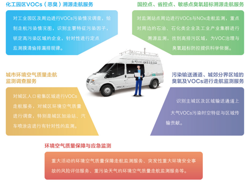 結(jié)合質(zhì)譜、色譜、光學(xué)、傳感器等多種先進(jìn)的分析技術(shù),可滿足走航與駐車等多種應(yīng)用需求;