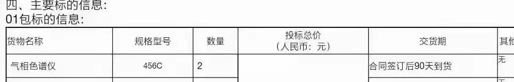 近日,海關總署物資裝備采購中心發布項目中標結果,此次招標為2020年武漢海關疫情防控專用設備(第二批)公開招標采購項目,招標文件編號HG20GK-A0000-D164,招標采購共3包,涉及氣相色譜儀、便攜式核酸檢測箱、熒光定量PCR儀等相關設備,天美公司2臺賽里安456C氣相色譜儀成功入選。
