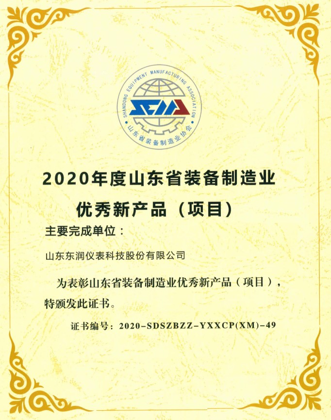 為鼓舞士氣,提振信心,樹立先進標桿,形成發(fā)展合力,加快推動全省裝備制造業(yè)高質(zhì)量發(fā)展,山東省裝備制造業(yè)協(xié)會在濟南舉辦“2020 年度(首屆)山東省裝備制造業(yè)科技創(chuàng)新獎頒獎大會暨科技賦能項目發(fā)布會”,山東東潤儀表科技股份有限公司榮獲“優(yōu)秀新產(chǎn)品獎”,此次大會表彰獎勵了全省裝備制造行業(yè)科技創(chuàng)新項目和先進集體、先進個人。