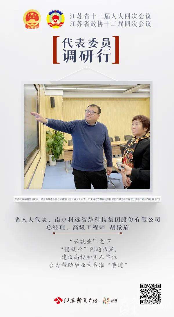 就業(yè)是經(jīng)濟的“晴雨表”,是民生的“壓艙石”。疫情防控常態(tài)化背景下,高校畢業(yè)生的就業(yè)問題是當前也是未來一段時間的工作重點之一。在省兩會召開前夕,省人大代表、科遠智慧總裁胡歙眉前往東南大學就業(yè)指導中心進行調(diào)研。