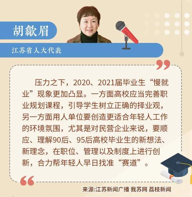 胡歙眉發(fā)現(xiàn),壓力之下,2020、2021屆畢業(yè)生“慢就業(yè)”現(xiàn)象更加凸顯,無論快與慢,年輕人盡快找準屬于自己的“賽道”才是關(guān)鍵。如何讓畢業(yè)生能夠結(jié)合自身優(yōu)劣勢制定個人規(guī)劃,更好地為國家重點需要發(fā)展領(lǐng)域做出貢獻,都是學校、用人單位都需要思考的問題。