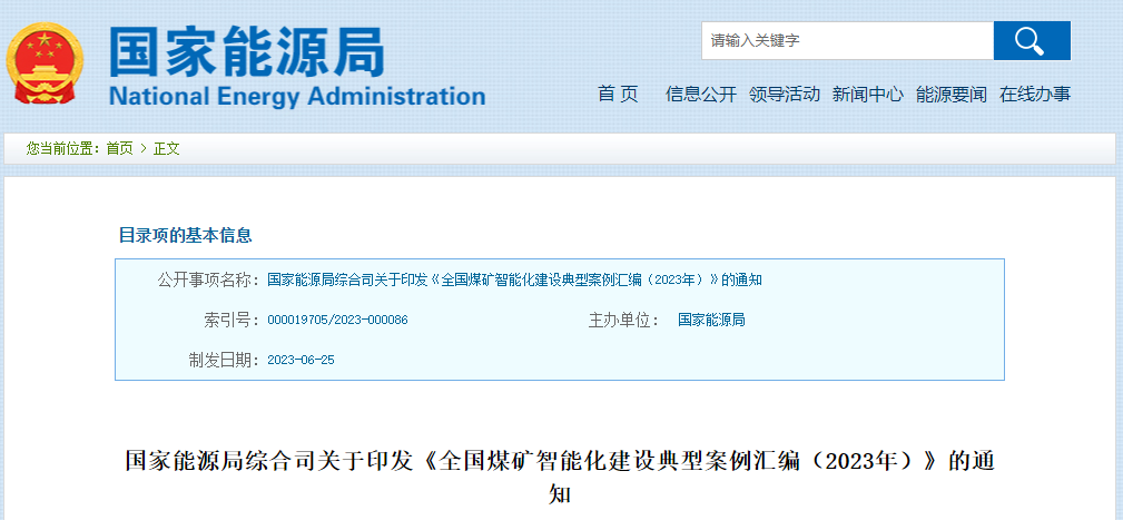 摘要:據國家能源局網站6月26日消息,國家能源局綜合司發布關于印發《全國煤礦智能化建設典型案例匯編(2023年)》的通知。