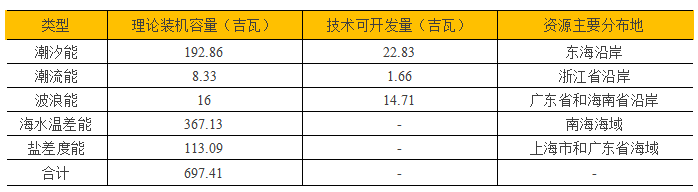 表2:我國(guó)近海海洋能資源統(tǒng)計(jì)