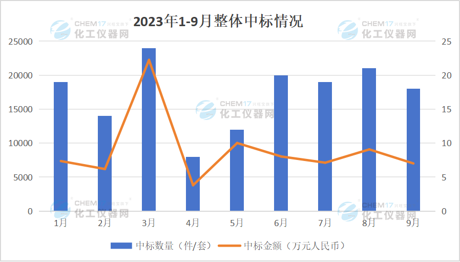 觀察20231-9月電鏡中標情況”可以看出,9月的電鏡中標數量與上月相比基本持平,中標數量和中標金額略有降低。9月電鏡中標數量為18套,與8月的21套相比,下降了5%;中標金額為7004.64萬元,與8月的9072.17萬元相比,下降了22.79%