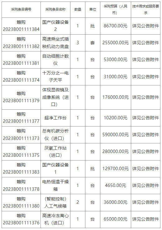 江西農(nóng)業(yè)大學(xué)總有機(jī)碳分析儀等進(jìn)口及國(guó)產(chǎn)儀器設(shè)備采購(gòu)項(xiàng)目 招標(biāo)項(xiàng)目的潛在投標(biāo)人應(yīng)在 江西省公共資源交易網(wǎng)(網(wǎng)址:https://www.jxsggzy.cn/web/) 獲取招標(biāo)文件,并于 2024年02月07日 14點(diǎn)00分 (北京時(shí)間)前遞交投標(biāo)文件。