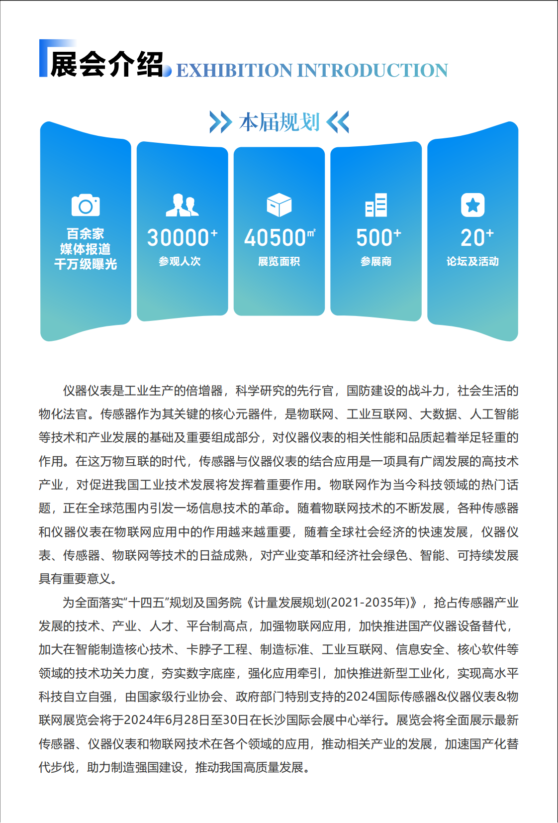 為全面落實(shí)“十四五”規(guī)劃及國務(wù)院《計(jì)量發(fā)展規(guī)劃(2021—2035年)》及深入貫徹習(xí)近平總書記關(guān)于新型工業(yè)化的重要指示和全國新型工業(yè)化推進(jìn)大會(huì)精神,夯實(shí)數(shù)字底座,強(qiáng)化應(yīng)用牽引,加快推進(jìn)新型工業(yè)化,首屆國際傳感器&儀器儀表&物聯(lián)網(wǎng)展覽會(huì)將于2024年6月在長沙舉辦。為了支持地方經(jīng)濟(jì)高質(zhì)量發(fā)展,我協(xié)會(huì)作為展會(huì)的特別支持單位,對(duì)該展會(huì)給予了高度關(guān)注。
