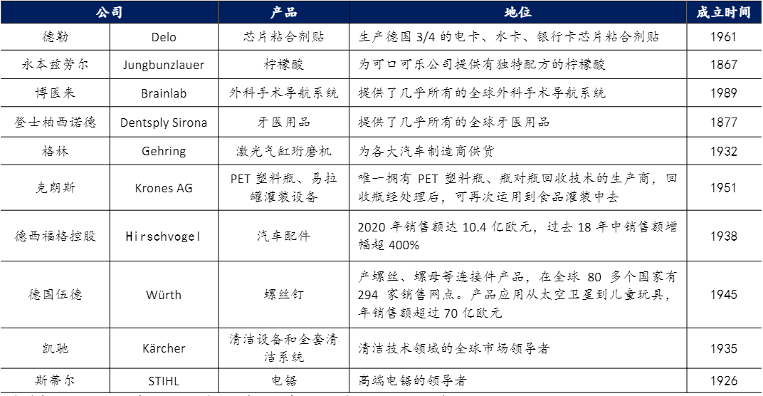 表:部分德國中小企業(yè)已成為細分領(lǐng)域巨頭或唯一供應(yīng)商