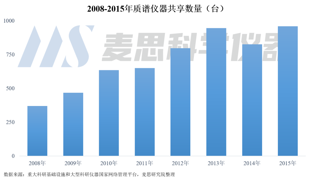 根據麥思研究院統(tǒng)計,2008-2015年共享平臺上約有5600臺質譜儀器開始啟用,其中約2000臺來自各類學校。