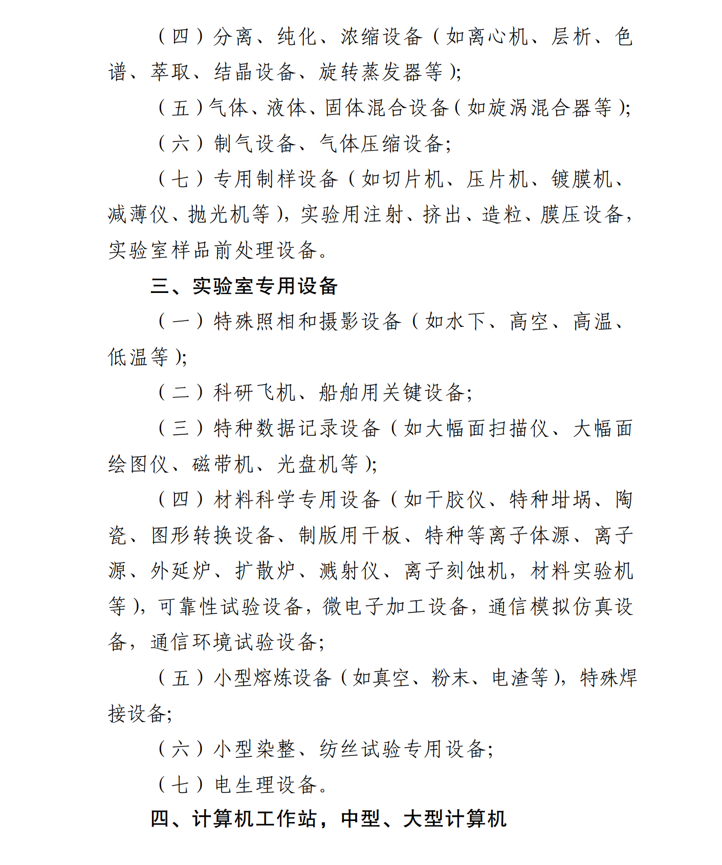 主要涉及四大門類:實驗環(huán)境方面、樣品制備設(shè)備和裝置、實驗室專用設(shè)備、計算機(jī)工作站,中型、大型計算機(jī)。