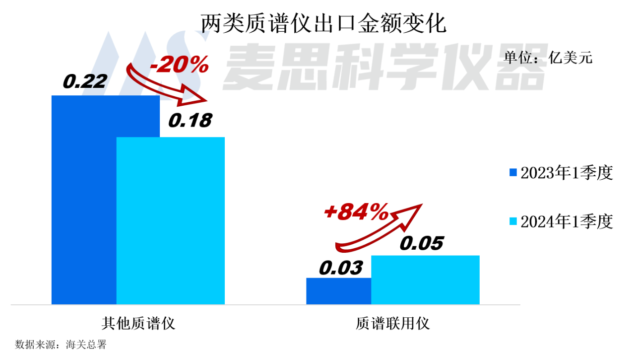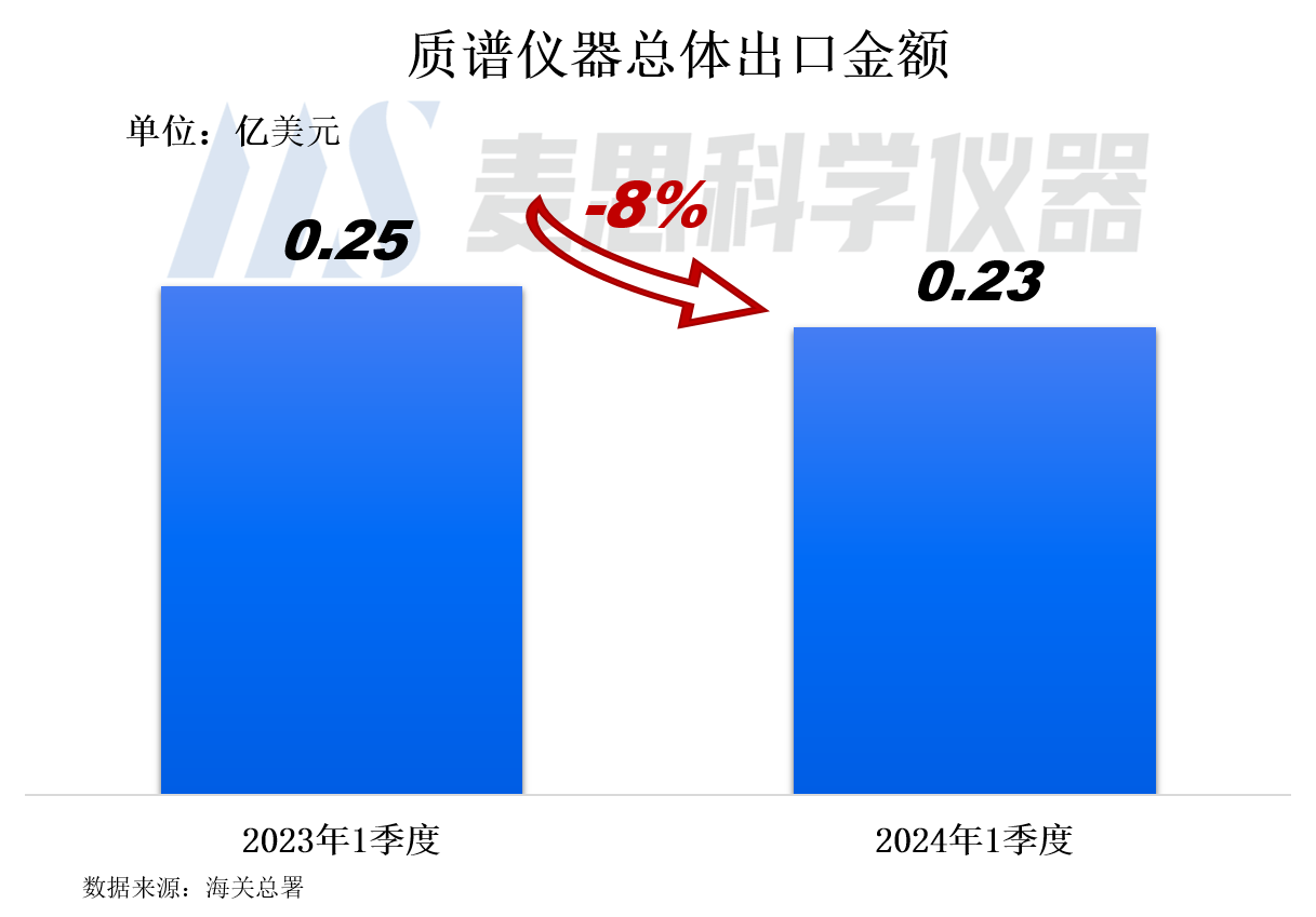 2024年1季度我國質譜儀器出口金額為2300萬美元(約合人民幣1.64億元),同比下降8%。