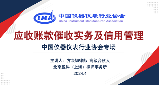 為進(jìn)一步助力行業(yè)企業(yè)做好應(yīng)收賬款管理,降低經(jīng)營風(fēng)險(xiǎn),提升經(jīng)營效率和能力,4月26日上午,由中國儀器儀表行業(yè)協(xié)會(huì)、北京盈科(上海)律師事務(wù)所聯(lián)合舉辦的“2024年度儀器儀表行業(yè)首期培訓(xùn)班--應(yīng)收賬款催收實(shí)務(wù)和信用管理”圓滿舉辦。本次培訓(xùn)班為線上形式,吸引了儀器儀表行業(yè)企業(yè)的近260名學(xué)員參加,中國儀器儀表行業(yè)協(xié)會(huì)副秘書長鄭朝松出席此次培訓(xùn)活動(dòng)并致辭。