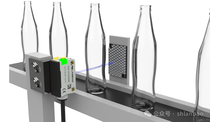 通過計(jì)數(shù)來檢查和控制產(chǎn)品流是飲料工廠對產(chǎn)品包裝的一項(xiàng)典型應(yīng)用。在飲料工業(yè)生產(chǎn)中,制造瓶子時(shí)將生產(chǎn)出多樣的產(chǎn)品變型,其輸送過程的循環(huán)速率較高,為實(shí)現(xiàn)快速流暢的運(yùn)輸,需要可靠地識別瓶子,由于它們的形狀和表面情況多變、傳輸速度較高、光學(xué)特性復(fù)雜,實(shí)現(xiàn)穩(wěn)定準(zhǔn)確檢測尤為困難。蘭寶PSE-GC50系列光電傳感器可靠檢測透明物體,無論是薄膜、托盤、玻璃瓶、塑料瓶還是薄膜斷裂,PSE-GC50都能可靠地進(jìn)行識別,不漏檢,對各種透明物體穩(wěn)定檢測,大大提升流水線工作效率。
