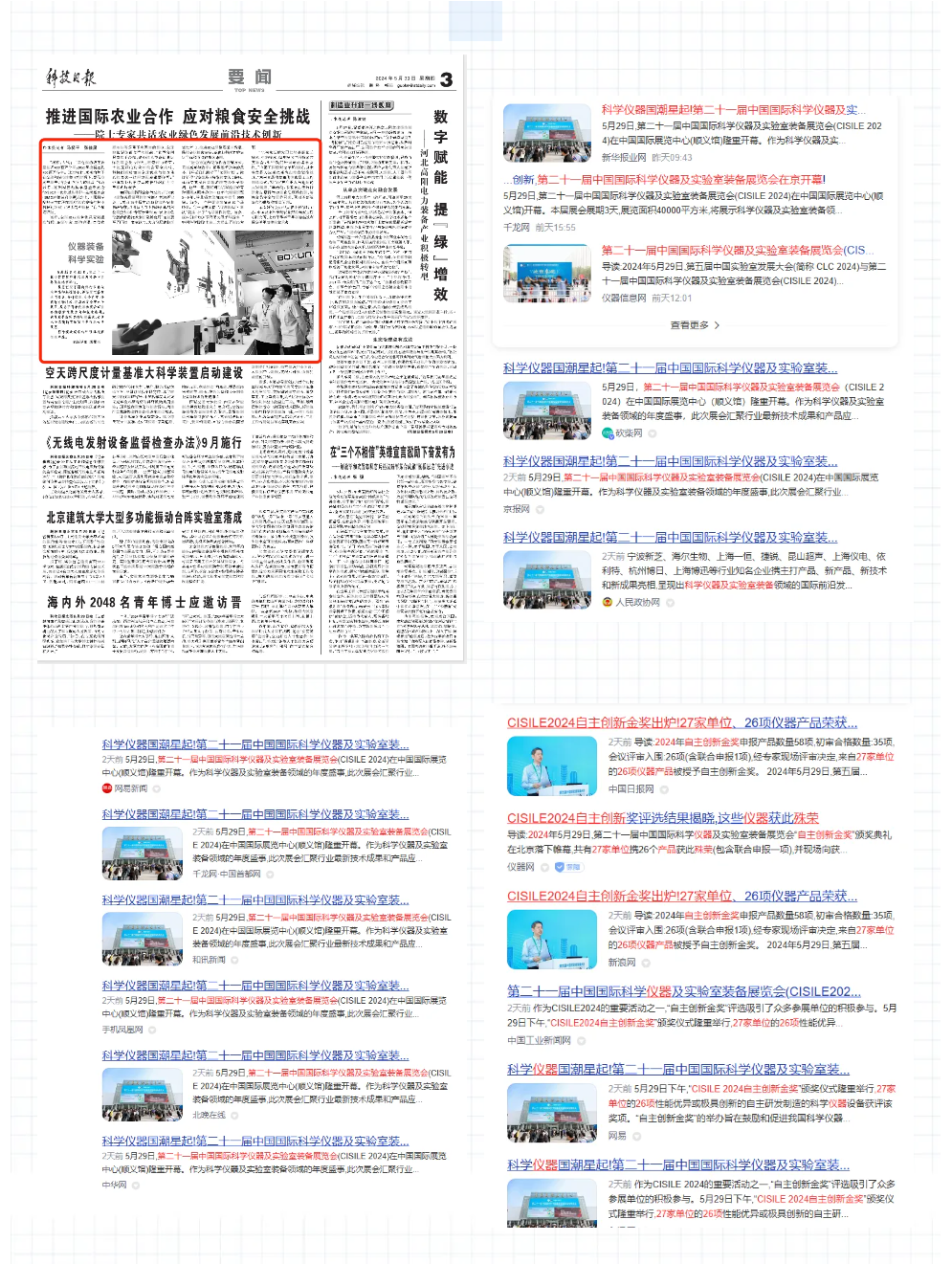 科技日報、中國工業網、化工儀器網、儀器學習網、分析測試百科網、儀器信息網、儀表堂堂網等多家行業權威媒體對大會進行了現場采訪報道,向全國乃至全球傳遞了CISILE 2024的盛況和亮點。