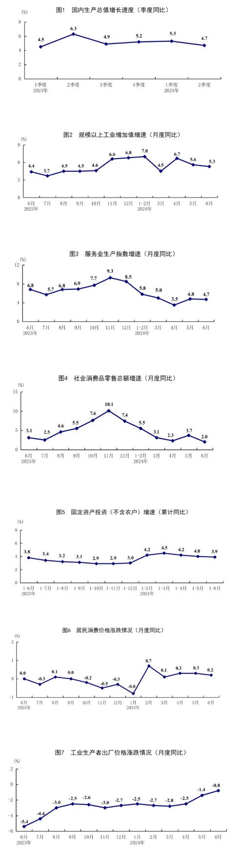 2023年各季度及2024年一季度、二季度GDP環(huán)比增速分別為1.8%、0.8%、1.5%、1.2%、1.5%和0.7%。