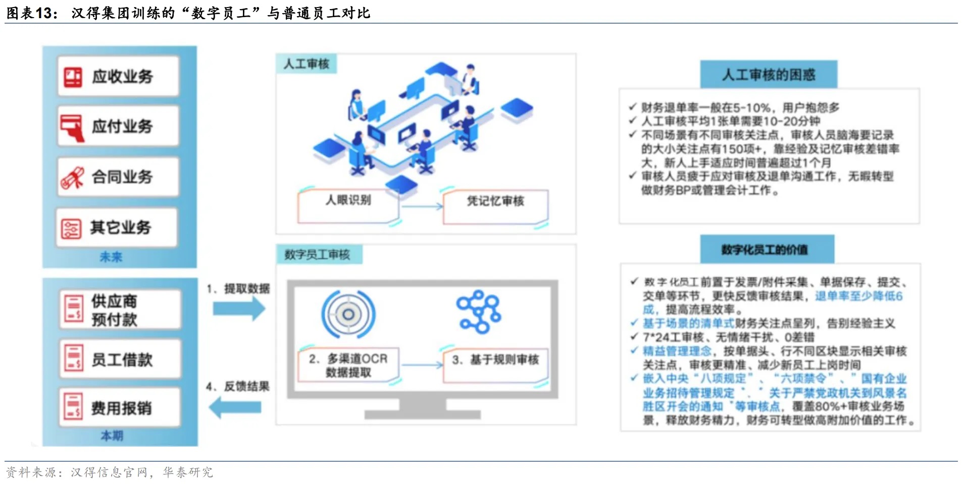 AI大模型+ERP軟件,多場景發揮產品能力。ERP管理軟件是以管理會計為核心的信息管理系統,其將企業內部所有資源整合在一起,對采購、生產、成本、庫存、分銷、運輸、財務、人力資源進行規劃,從而達到最佳資源組合,取得最佳效益。基于AI輔助的ERP系統,可以通過龐大的數據訓練,幫助企業做出最有效的決策。