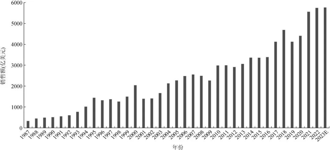 圖11987—2023年全球半導(dǎo)體產(chǎn)業(yè)銷售額