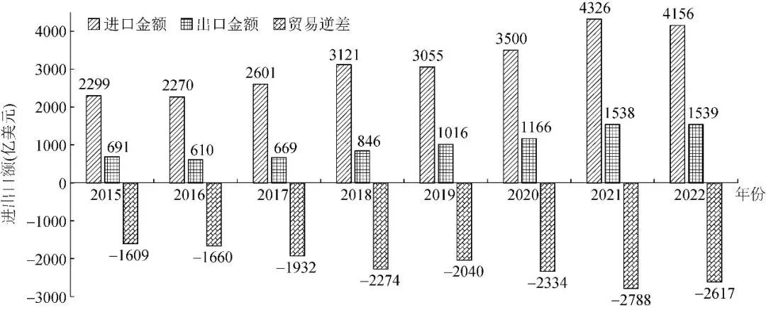 圖2:2016—2022年中國集成電路產(chǎn)業(yè)進(jìn)出口額