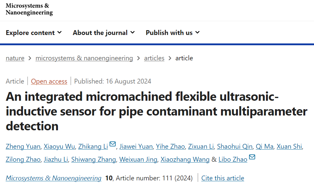式電磁感應-微機械柔性超聲傳感器,可用于管道污染物多參數檢測