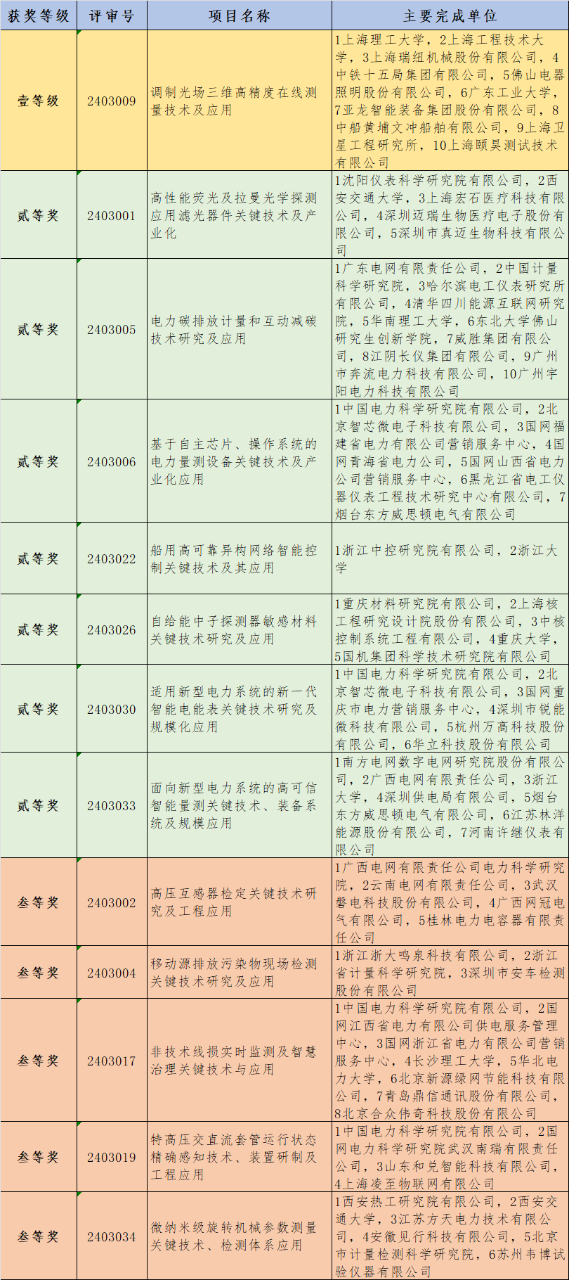 近日,機(jī)械工業(yè)科學(xué)技術(shù)獎(jiǎng)勵(lì)辦公室發(fā)布了2024年度“機(jī)械工業(yè)科學(xué)技術(shù)獎(jiǎng)”擬授獎(jiǎng)項(xiàng)目公示。共評(píng)出擬授獎(jiǎng)項(xiàng)目435項(xiàng),其中技術(shù)發(fā)明獎(jiǎng)34項(xiàng)(特等獎(jiǎng)1項(xiàng)、一等獎(jiǎng)12項(xiàng)、二等獎(jiǎng)17項(xiàng)、三等獎(jiǎng)4項(xiàng))、科技進(jìn)步獎(jiǎng)401項(xiàng)(特等獎(jiǎng)4項(xiàng)、一等獎(jiǎng)28項(xiàng)、二等獎(jiǎng)184項(xiàng)、三等獎(jiǎng)185項(xiàng))。其中儀器儀表組共獲得:技術(shù)發(fā)明類壹等級(jí)1項(xiàng)、貳等獎(jiǎng)2項(xiàng);科技進(jìn)步類壹等級(jí)1項(xiàng)、貳等獎(jiǎng)7項(xiàng),叁等獎(jiǎng)5項(xiàng)。