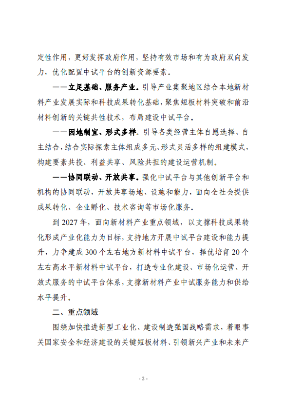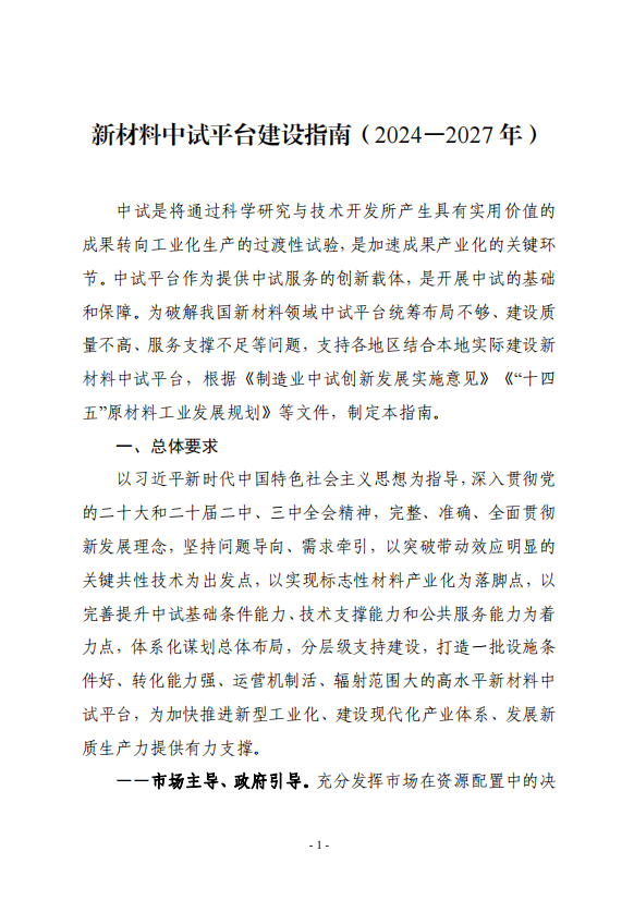 現(xiàn)將《新材料中試平臺(tái)建設(shè)指南(2024—2027年)》印發(fā)給你們,請(qǐng)結(jié)合實(shí)際認(rèn)真抓好落實(shí)。