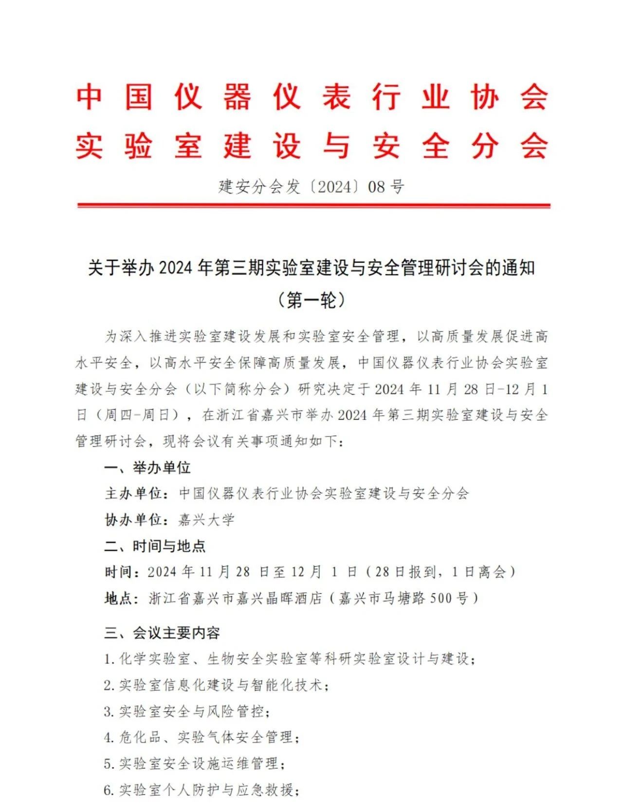 關于舉辦2024年第三期實驗室建設與安全管理研討會