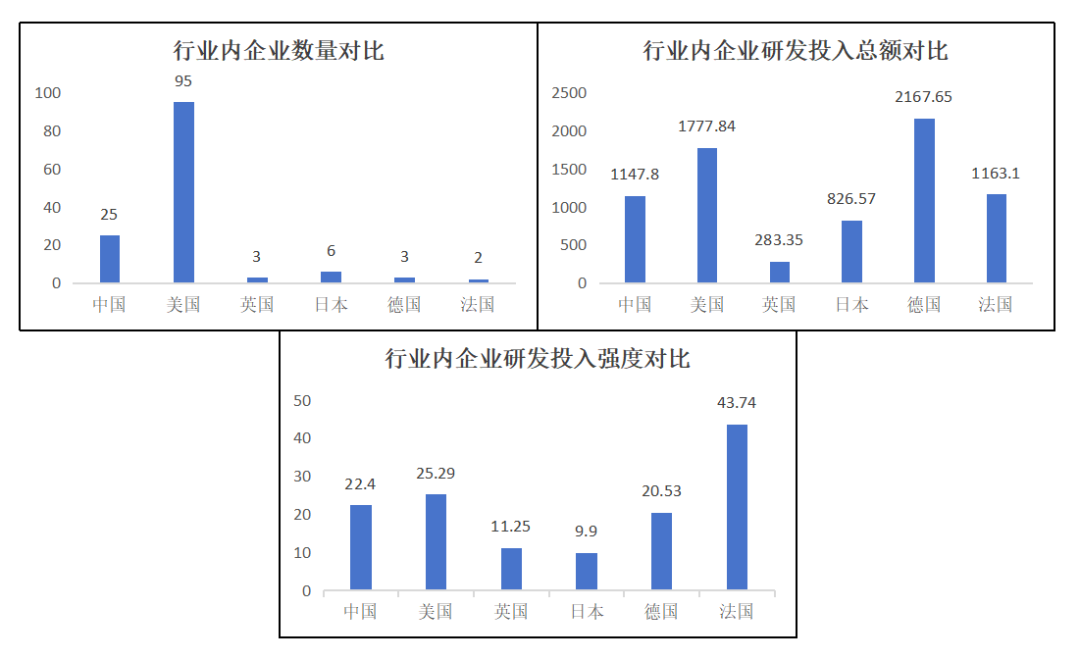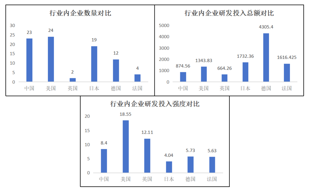 四是汽車和零部件行業上,中國科技領軍企業的數量優勢并不明顯;其平均研發投入總額僅略高于英國,處于較低的水平;其平均研發投入強度則大約處于中等偏上的水平??傊袊萍碱I軍企業在汽車和零部件行業上的發展比較一般,體量優勢不明顯,創新水平不高;在平均研發投入總額較低的情況下卻有著較高的平均研發投入強度,更是說明了我國汽車和零部件行業的營收情況不容樂觀。