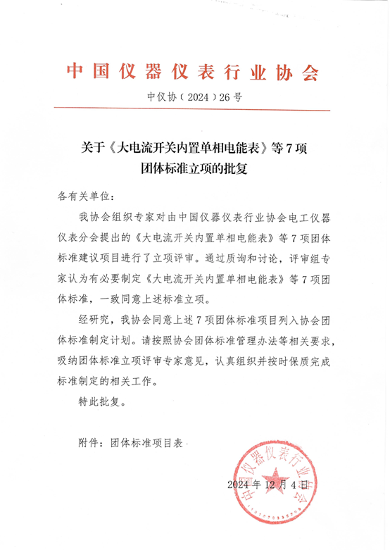 近日,根據(jù)《中國(guó)儀器儀表行業(yè)協(xié)會(huì)團(tuán)體標(biāo)準(zhǔn)管理辦法》的規(guī)定,經(jīng)審查,對(duì)由中國(guó)儀器儀表行業(yè)協(xié)會(huì)電工儀器儀表分會(huì)提出的《大電流開(kāi)關(guān)內(nèi)置單相電能表》等7項(xiàng)團(tuán)體標(biāo)準(zhǔn)進(jìn)行立項(xiàng)(標(biāo)準(zhǔn)編號(hào)和名稱(chēng)見(jiàn)下表),特此公告。