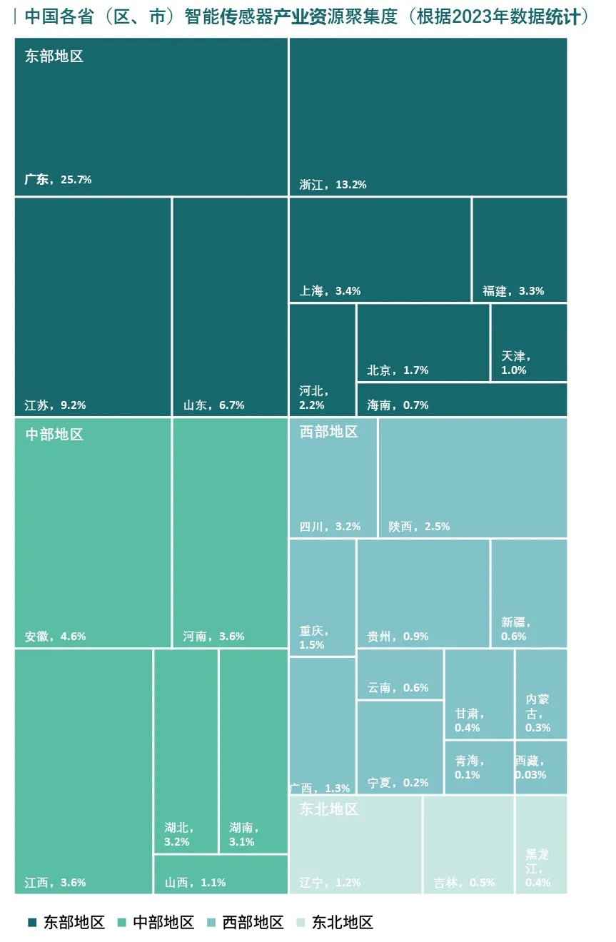 中國智能傳感器區域發展整體呈現東部持續領先、中西部崛起有望的態勢。目前,東部地區聚集了全國67.1%的產業資源,廣東、浙江、江蘇、山東、上海等省(市)的企業資源領跑全國。近年來,中部的安徽、河南、湖北等地以及西部的四川、陜西、重慶等地,也在持續加大對智能傳感器產業的支持力度。“十五五”時期,中國的智能傳感器產業資源將仍以東部為引領,但中西部的部分省份也將逐步崛起,實現區域多點開花的發展格局。