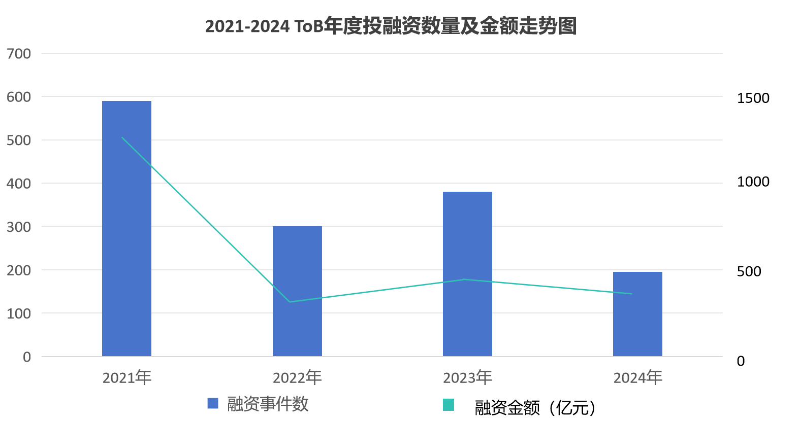 縱觀整個ToB軟件市場,技術支撐、垂直行業、工業軟件這三大類連續兩年保持為融資核心領域的TOP3。其中,2021年是近四年里的融資高峰年,隨后幾年進入調整期,2022年間無論融資數量還是金額大幅下滑,這與宏觀經濟環境、資本市場收緊及行業泡沫清理密切相關;2023年的回升顯示行業逐步走向理性,優質項目開始重新受到資本青睞;2024年融資總額未見顯著復蘇,但行業資金更加聚焦于核心領域和頭部企業。