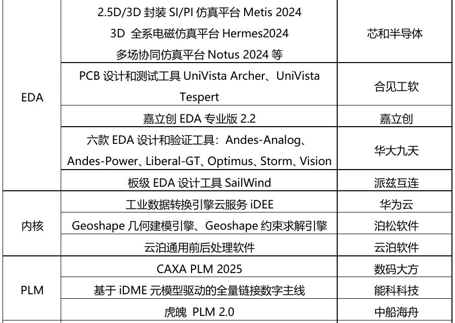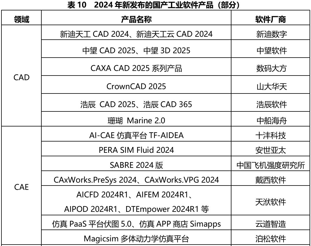 2024年,國內工業軟件廠商推出了若干款全新產品和年度版本,覆蓋CADCAEEDAMBSEPLMMBM、內核引擎、工具鏈平臺等多個產品領域,極大填補了研發設計工業軟件領域的空白,為國產工業軟件的國產替代夯實了基礎。