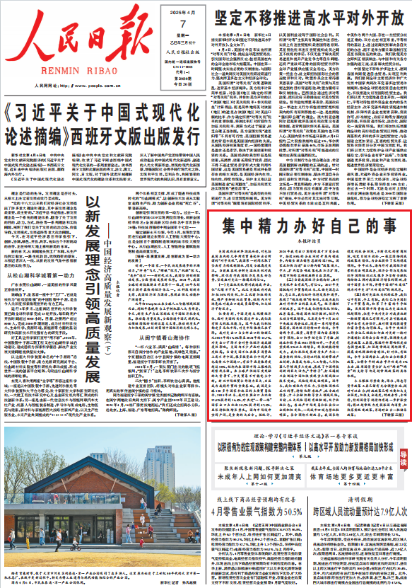 (三)面對美濫施關(guān)稅的亂拳,我們心中有數(shù)、手上有招。我們已與美國打了8年貿(mào)易戰(zhàn),積累了豐富的斗爭經(jīng)驗。雖然國際市場普遍認(rèn)為美濫施關(guān)稅超預(yù)期,但黨中央對美方對我實施新一輪經(jīng)貿(mào)遏壓已有預(yù)判,對其可能造成的沖擊有充分估計,應(yīng)對預(yù)案的提前量和富余量也打得較足。去年中央經(jīng)濟(jì)工作會議已經(jīng)就如何應(yīng)對美新一輪對華遏制打壓作出全面部署,強調(diào)要充實完善政策工具箱,根據(jù)外部影響程度動態(tài)調(diào)整政策,加強超常規(guī)逆周期調(diào)節(jié),提高宏觀調(diào)控的前瞻性、針對性、有效性。今年全國兩會上,我們出臺的很多政策,如將今年財政赤字率確定為4%左右,運用國債資金擴大對“兩新”“兩重”的支持等都是超常規(guī)政策的具體體現(xiàn)。