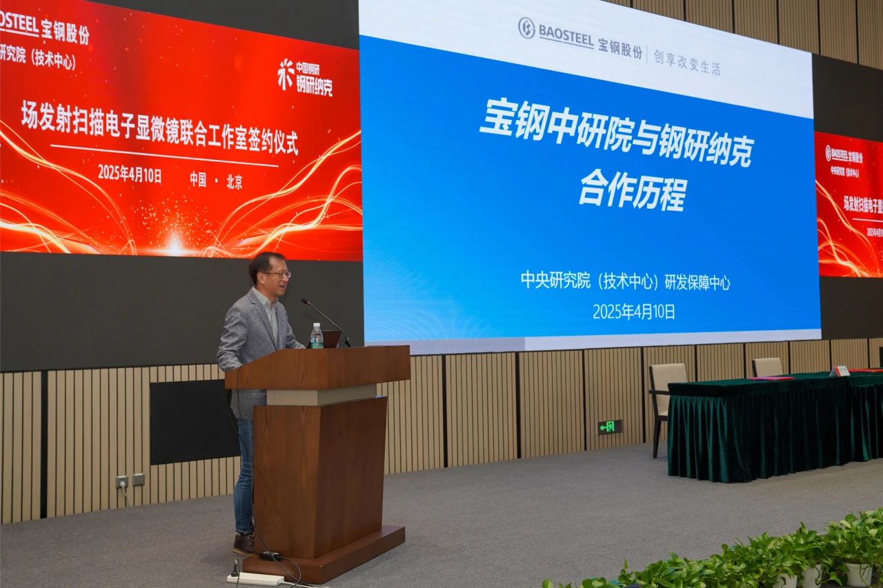 4月10日,納克微束(北京)有限公司(以下簡稱“納克微束”)與寶鋼股份中央研究院(技術(shù)中心)(以下簡稱“寶鋼中研院”)簽署掃描電鏡合作協(xié)議并舉行聯(lián)合工作室揭牌儀式,中國工程院王海舟院士,鋼研納克黨委書記、董事長楊植崗,副總經(jīng)理袁良經(jīng),總工程師沈?qū)W靜,寶鋼中研院副院長田正宏、研發(fā)保障中心主任徐棟愷,納克微束總經(jīng)理于兆斌等出席本次儀式。