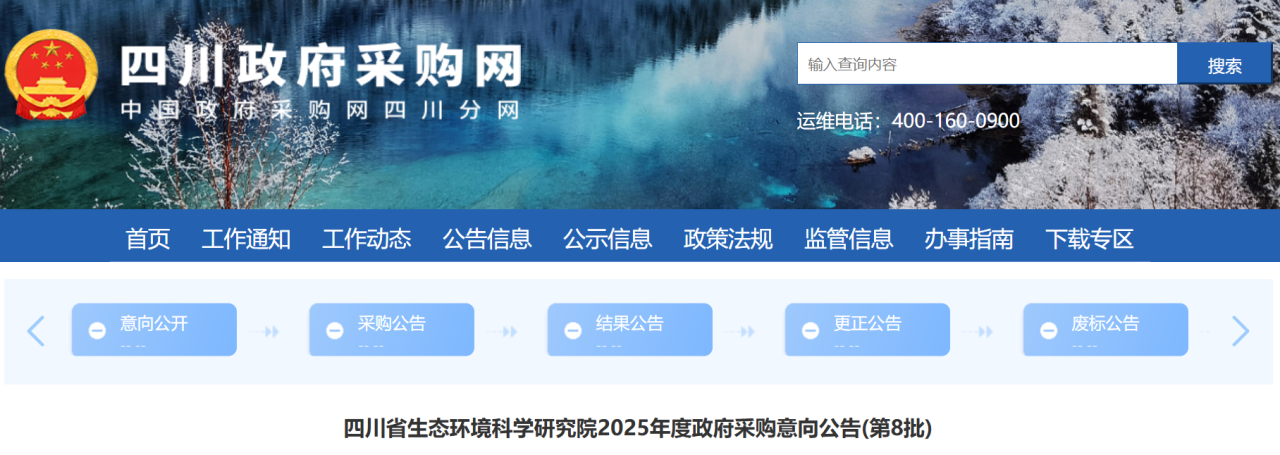 為便于供應(yīng)商及時(shí)了解政府采購信息,根據(jù)《財(cái)政部關(guān)于開展政府采購意向公開工作的通知》(財(cái)庫〔2020〕10號(hào))等有關(guān)規(guī)定,現(xiàn)將四川省生態(tài)環(huán)境科學(xué)研究院2025年度(第8批)采購意向公開如下: