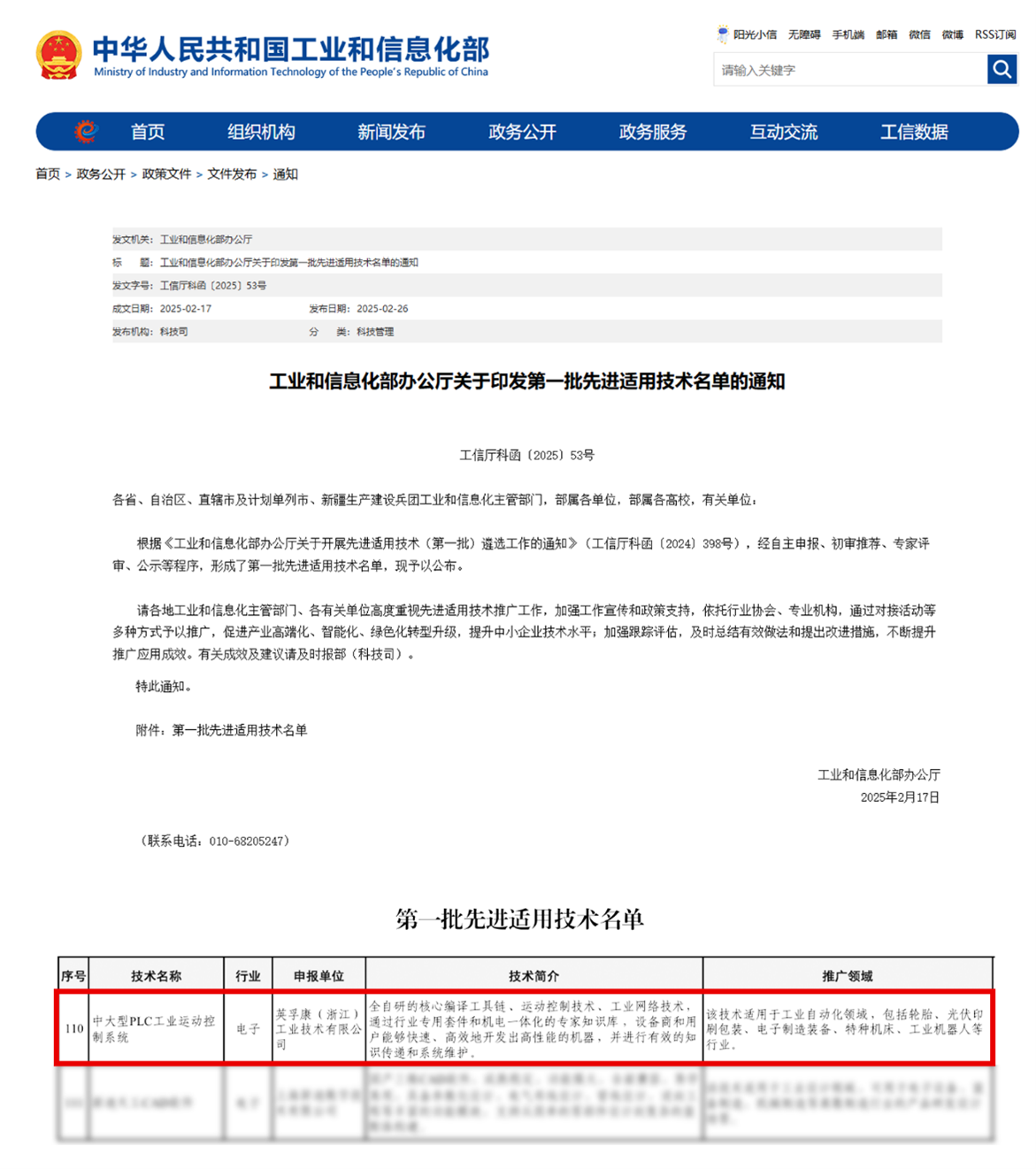 值得驕傲的是,在20252月,英孚康自主研發的大中型PLC工業運動控制系統憑借技術領先性、產業適配性與生態創新性入選了工信部第一批先進適用技術名單。作為國家層面的權威評選,工信部對參評技術從技術的創新性、成熟度、應用前景到市場競爭力、經濟效益等多個維度進行穿透式評估,能夠入選是對企業技術實力和創新能力的最高褒獎,其權威性與含金量不言而喻,這一殊榮無疑是對英孚康的技術實力和發展前景的高度認可。