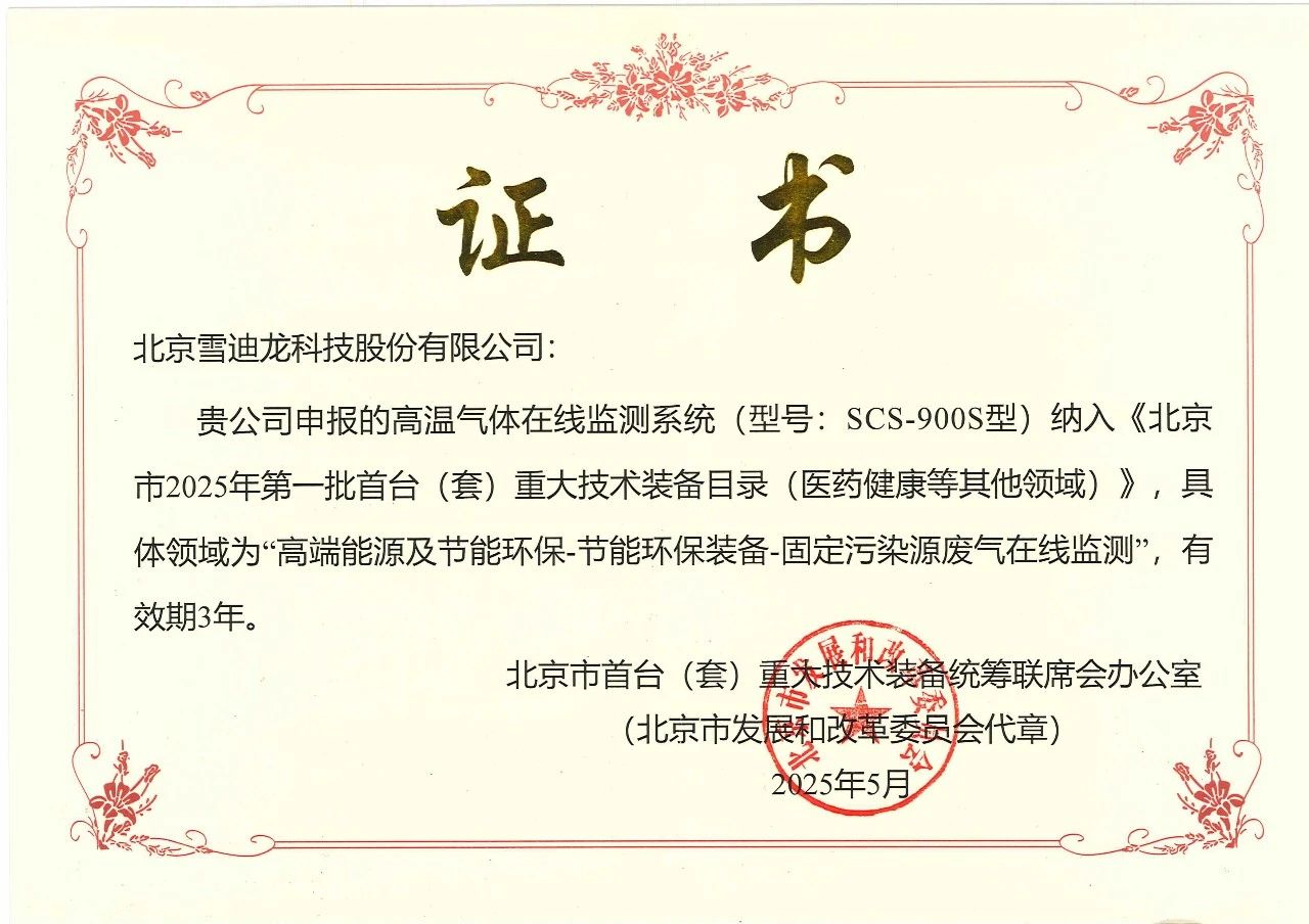 近日,北京市發(fā)展和改革委員會(huì)正式公布“北京市2025年第一批首臺(tái)(套)重大技術(shù)裝備目錄”,雪迪龍自主研發(fā)的高溫氣體在線監(jiān)測系統(tǒng)(SCS-900S)成功入選,展現(xiàn)了雪迪龍?jiān)诃h(huán)保裝備領(lǐng)域的技術(shù)實(shí)力和創(chuàng)新能力。