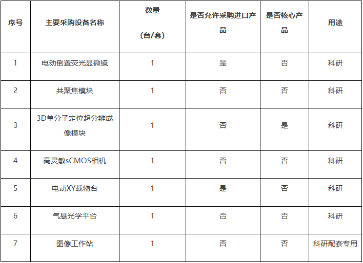 項目名稱:中國科學院遺傳與發育生物學研究所改善科研條件專項資金項目單分子定位超分辨成像顯微鏡研制采購項目
